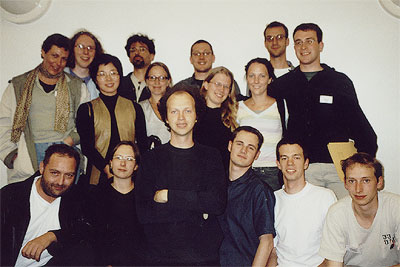 Back from Frankfurt - ich hatte tolle Tage beim Filmdreh zum Kurzspielfilm "Das Freudenhaus", so jedenfalls momentan noch der Arbeitstitel. Schon ultraspannend, wie so ein Film entsteht! Ein 30-köpfiges Team hat da locker mal alle Hände voll zu tun, wenn es am Motiv (die Filmer sagen allesamt "Motiv" statt "Set") dann heißt: Ton - läuft - Video - okay - Kamera - okay - Klappe - Kamera läuft - Action! Ein unglaublicher Aufwand für jede noch so kurze Szene! Bis da Beleuchtung und Kamera positioniert sind, Regisseur, Produktionsleiter, Aufnahmeleiter, Script, Continuity, Ausstattung, Klappe, Tonangler, Schauspieler, Kamera- und Tonmann ihr "go" geben und die Videoausspiegelung stimmt - das alles ist schon ein Abenteuer für sich. Für mich jedenfalls hochinteressant. Allein die Kamera kostet eine halbe Million Mark, und was stand da noch alles an Technik am Motiv! Stromaggregate, Tonequipment für Sprache (mono) und Atmosphäre, also sämtliche Nebengeräusche (stereo) sowie die Videoübertragung für den Regisseur, der ja nur selten durch die Kamera schaut - alles garniert von der auch in der Musik leider allzu üblichen "Spaghettifabrik", den abartig vielen Kabeln und Fußangeln also. Neben der ganzen Technik außerdem natürlich Ausstattung, Requisite, Maske, Schauspieler-, Komparsen- und Pressebetreuung, Fahrdienst und last not least dreimal täglich Catering. Journalistenbesuche und Photoshootings am Drehort nebenbei, der am Rande stattfindende Dreh eines Produktionsfilms, dem "Making-of", Interviews mit vielen Beteiligten und eine Million andere Dinge. Gelegenheit unter anderem auch für mich, mit dem Team über die Filmmusik zu diskutieren und das vorab produzierte Demo des Leitthemas zu präsentieren (Hurra - ist sehr gut angekommen!). In ein paar Tagen wird auch eine eigene Website dieses Films im Netz stehen, ich kenne jedoch noch nicht den Namen der Seite, melde es dann hier aber sofort, wenn ich ihn erfahre (die Graphiker haben sich am Drehort jedenfalls auch schon getroffen und erste Entwürfe und Konzepte ausgetauscht). Also ein rundum multimediales Happening, so ein Dreh. Da seit Freitag - direkt nach der Filmentwicklung - bereits der Roh-Cut des Streifens geschnitten wird, hatte ich gerade noch ganze zwei Tage, den Soundtrack fertigzustellen, aus dem urspünglich angedachten Reggae einen Ska-Reggae zu machen, außerdem noch ein paar atmosphärische Sounds zu kreieren, was für mich eine Riesenarbeit war - habe ich doch in üblicher Manier alle Instrumente selbst gespielt, selbst getextet, selbst gesungen, selbst aufgenommen, selbst abgemischt, selbst gemastert und selbst geschnitten, sicherheitshalber sowohl auf CD als auch auf DAT. Wurde nach drei Tagen fast ohne Schlaf fertig und konnte unsere Cutterin Sung-Hyung rechtzeitig "beliefern". More details after giving me two days of sleep! Hier noch ein Bild mit einem Teil unseres Teams, vorn in der Mitte Regisseur Veit Helmer.